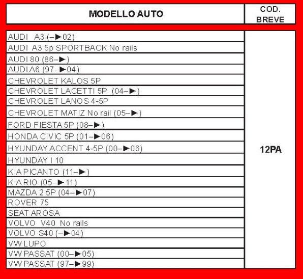 311.12PA BARRE §§TEMA ONE§§ 12PA CLICCA SULL§IMMAGINE PER VISUALIZZARE LE APPLICAZIONI. FORD FIESTA 5P 08> - VW PASSAT 97>05 - VW LUPO - SEAT AROSA Clicca