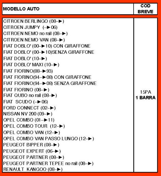 311.15PA BARRA §§TEMA ONE§§ 15PA CLICCA SULL§IMMAGINE PER VISUALIZZARE LE APPLICAZIONI. CITROEN BERLINGO/JUMPY/NEMO - FIAT DOBLÒ/FIORINO/QUBO/SCUDO - PEUGEOT BIPPER/EXPERT/PARTNER - RENAULT KANGOO Clicca